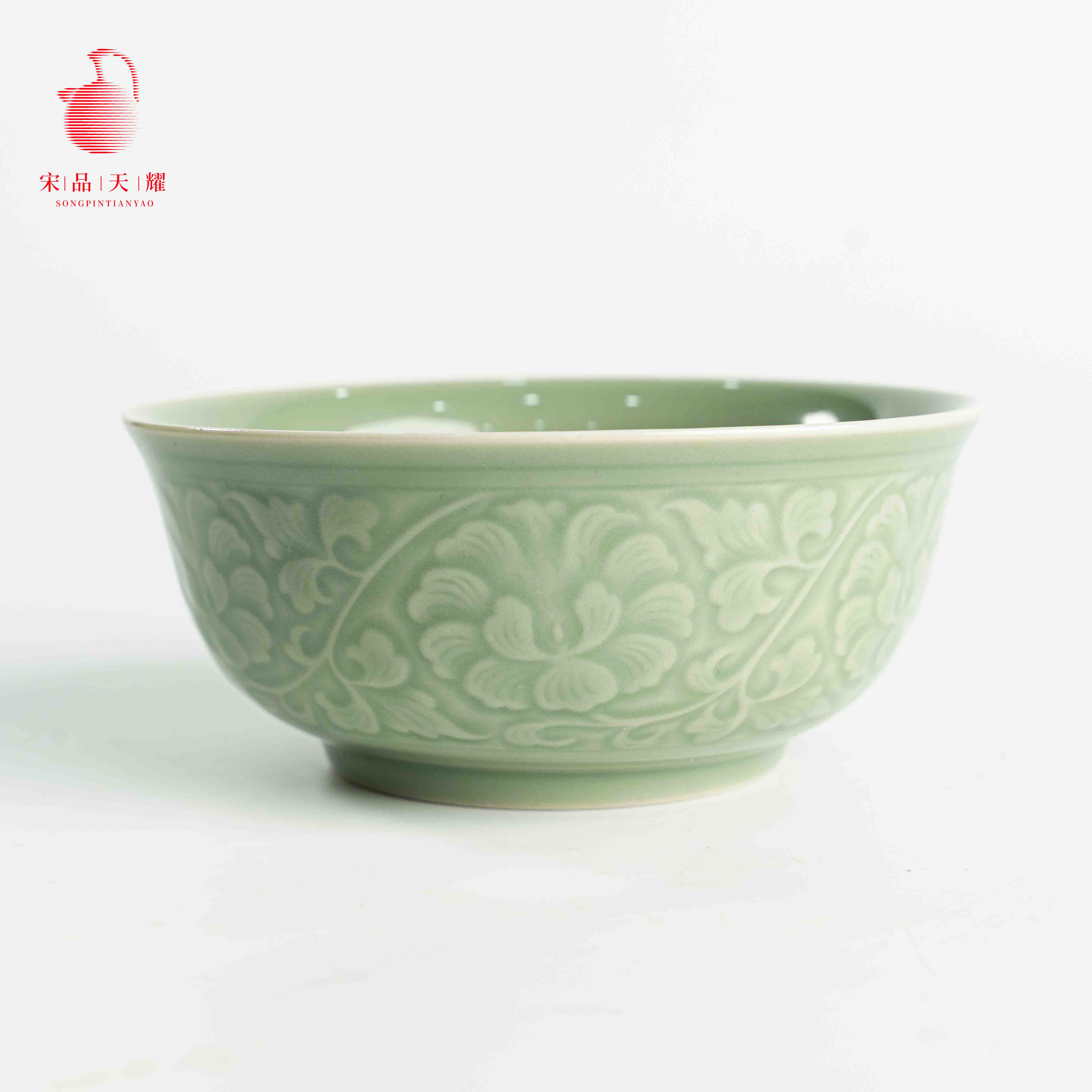 宋品天耀 原矿高温青瓷花舞大唐春5.5英寸碗 1*4 个