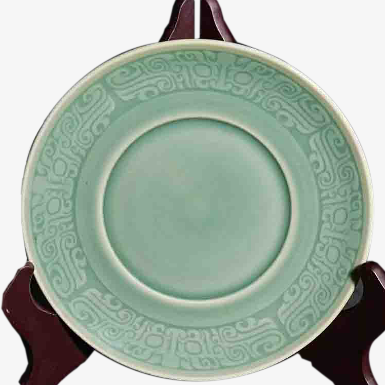 耀州窑青瓷浮雕龙纹壶承盘,乃工艺之精品,艺术之杰作。