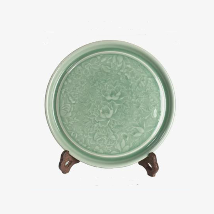 宋品天耀耀州瓷百花盘高温青瓷半手工精修家用陶瓷茶盘功夫茶具20.5cm *1个