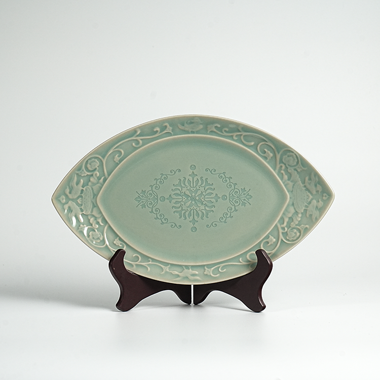 宋品天耀耀州窑花舞大唐橄榄盘-长30cm *2个