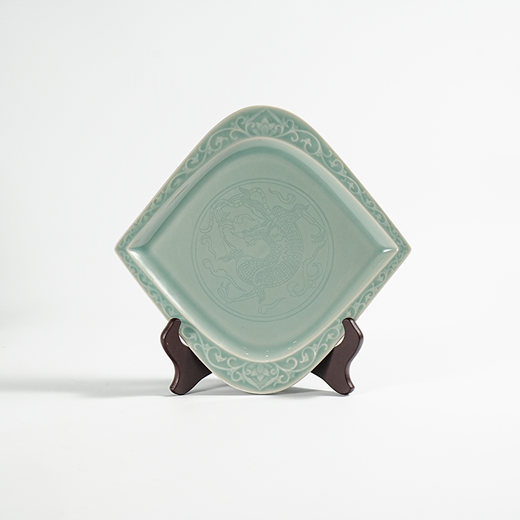 宋品天耀耀州窑花舞大唐鸡心盘(龙纹)高温青瓷菱形创意餐盘茶盘 *2个
