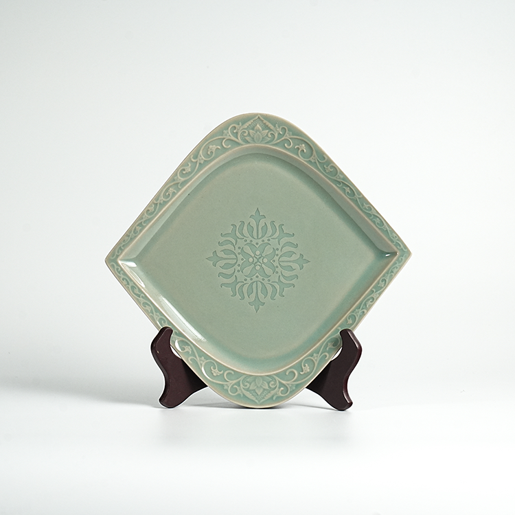 宋品天耀耀州窑花舞大唐鸡心盘高温青瓷菱形创意餐盘茶盘 *2个