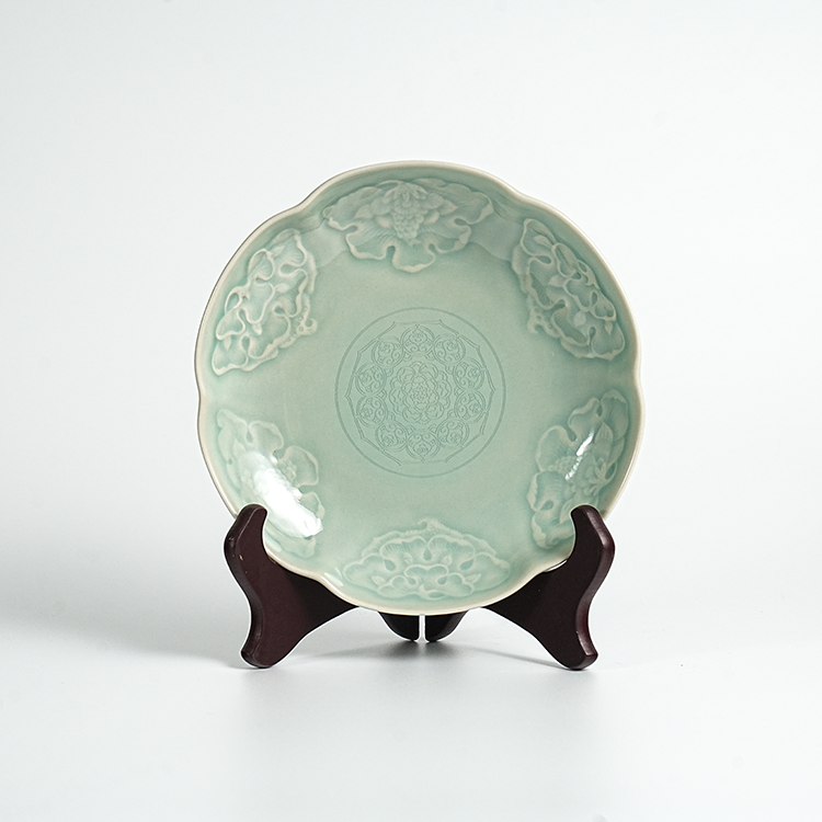 宋品天耀耀州窑7英寸花舞大唐花口盘高温青瓷莲瓣创意中餐盘 *2个