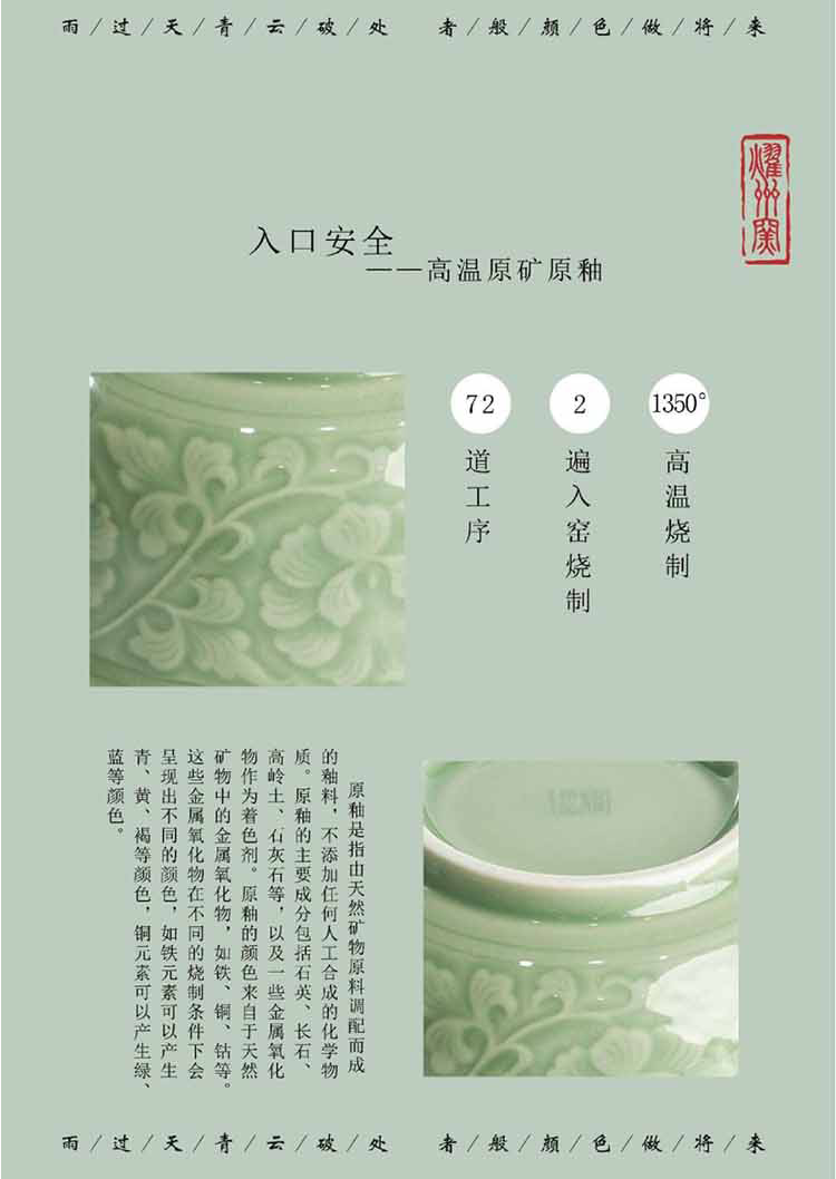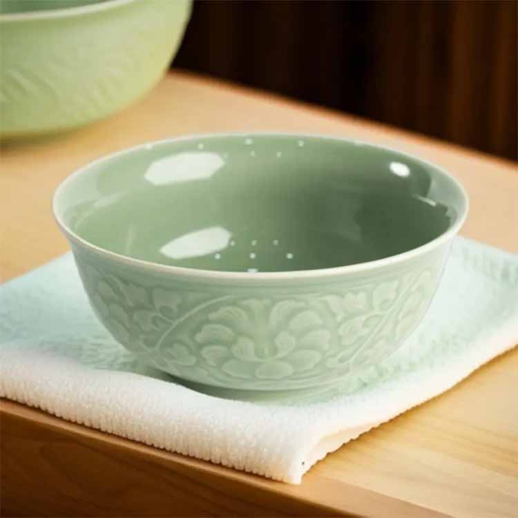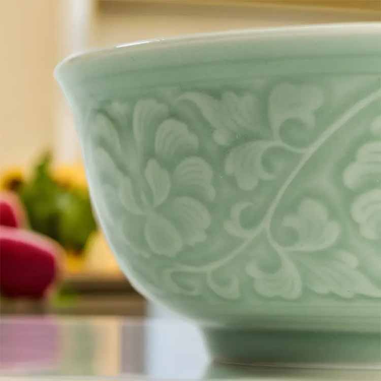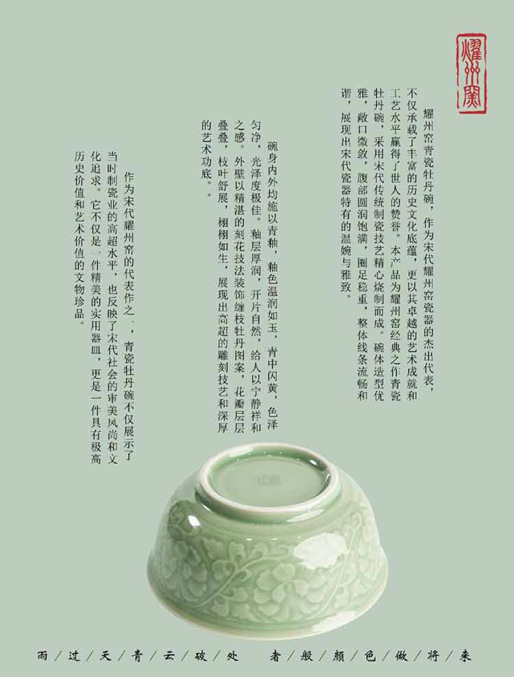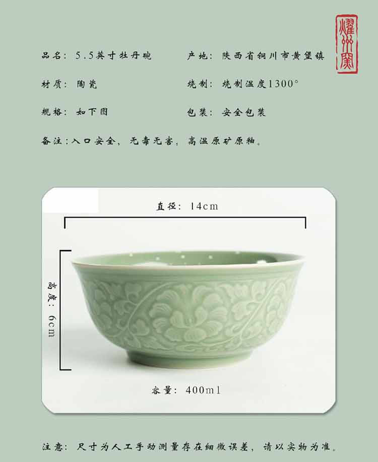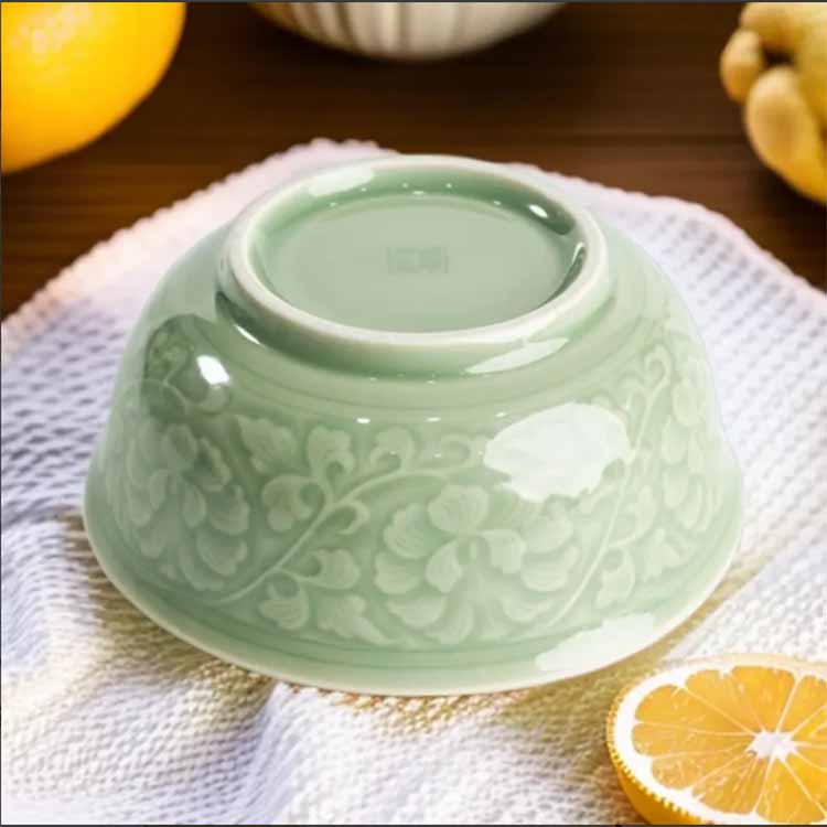 宋品天耀 原矿餐具青瓷中式家用牡丹米饭碗面碗 5.5英寸牡丹碗*4个