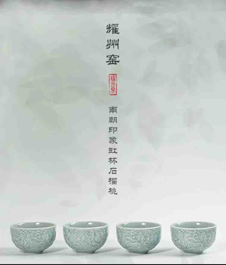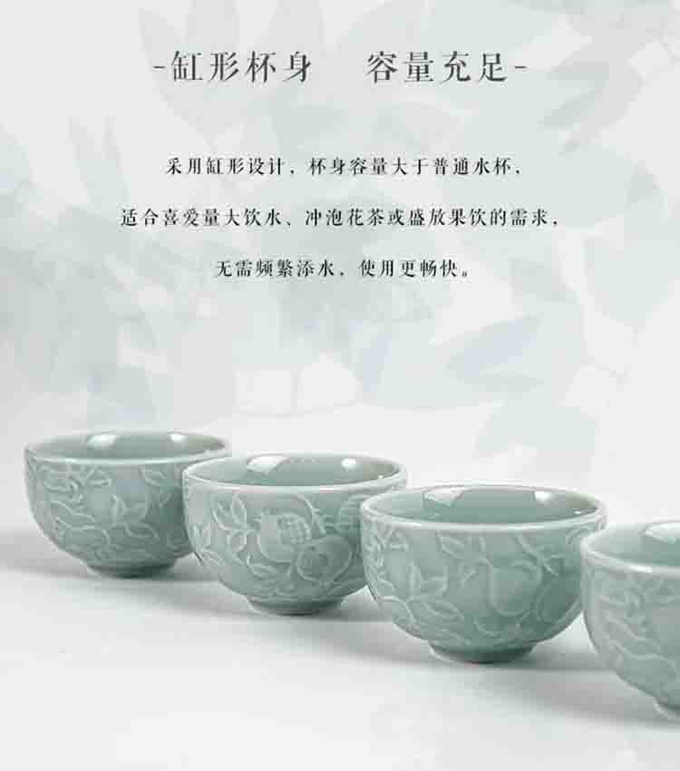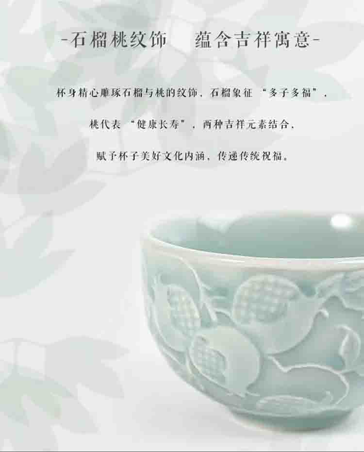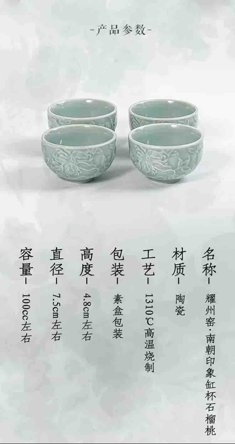 耀州窑南朝印象缸杯石榴桃主人杯功夫茶杯茶具100ml+托 *1套