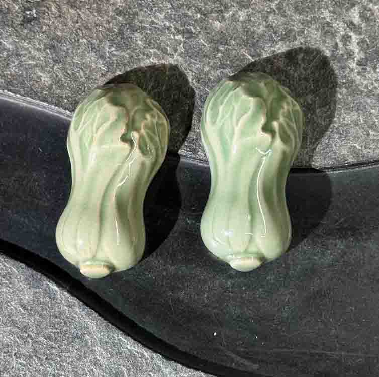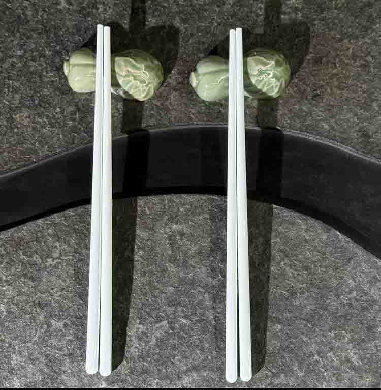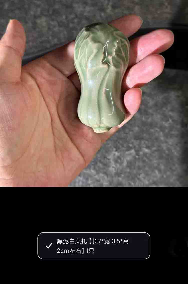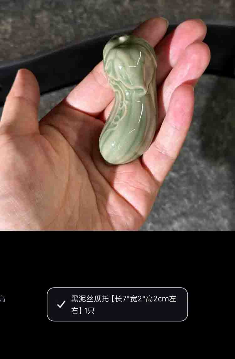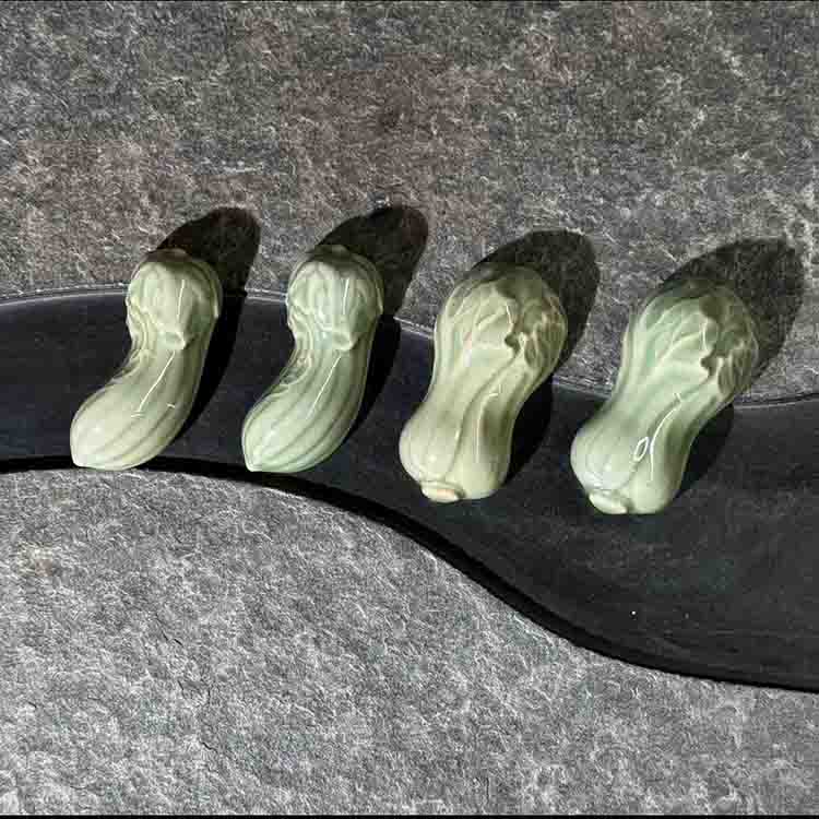 宋品天耀耀州窑黑泥白菜2个+丝瓜2个筷子架长7*3.5*2cm *1套