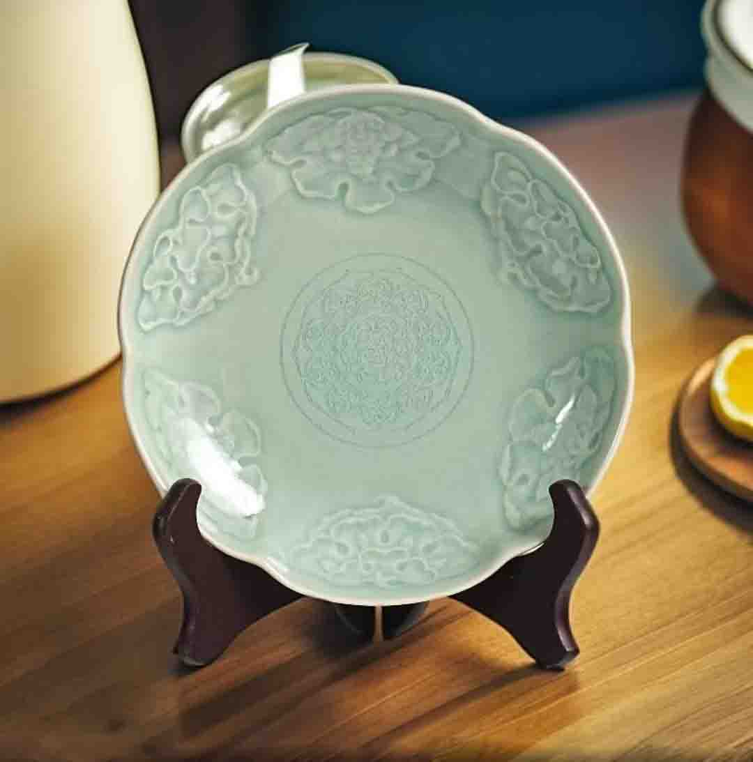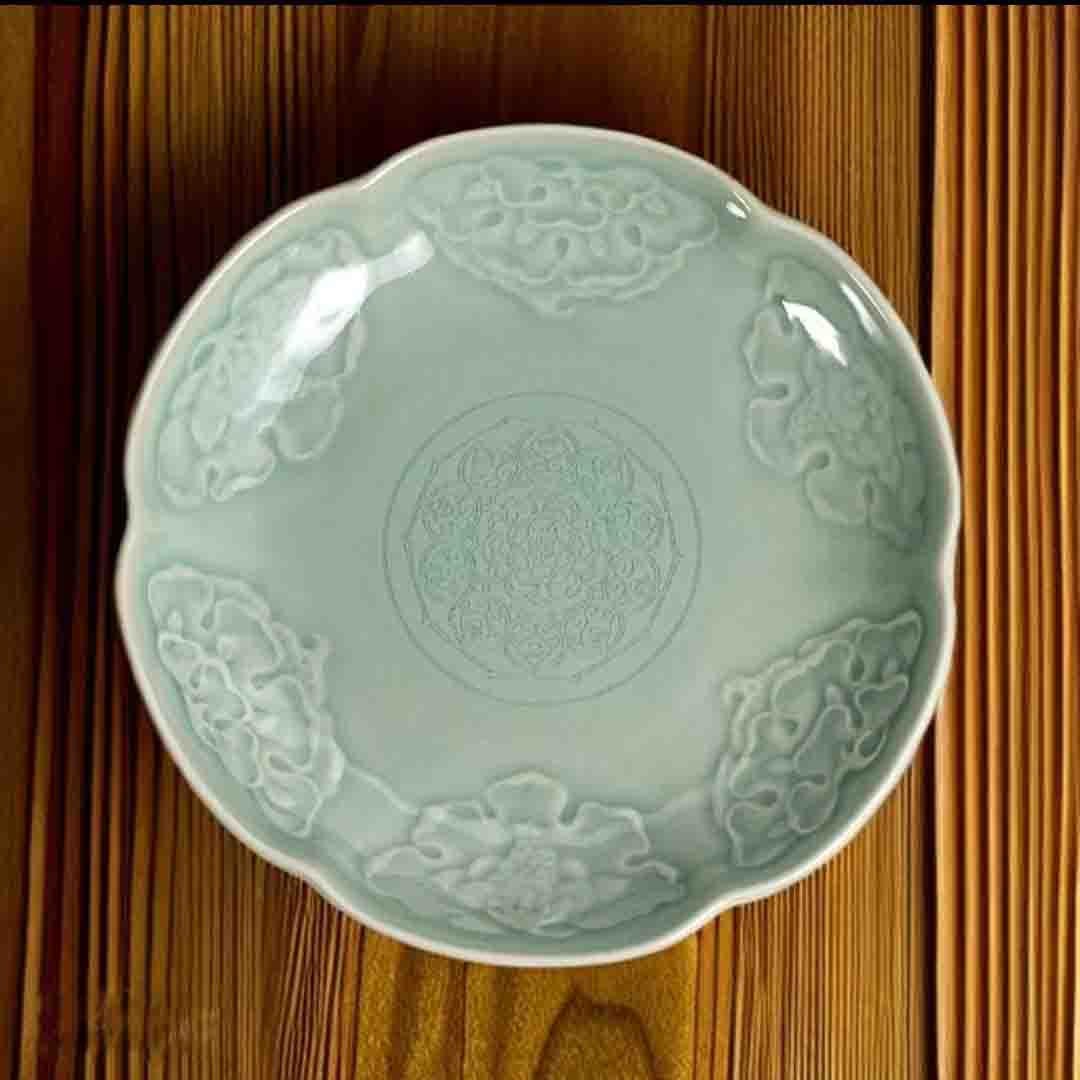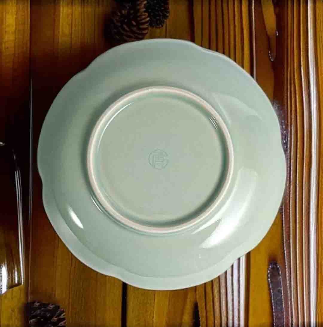 宋品天耀耀州窑7英寸花舞大唐花口盘高温青瓷莲瓣创意中餐盘 *2个