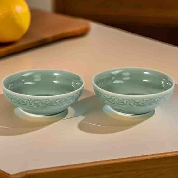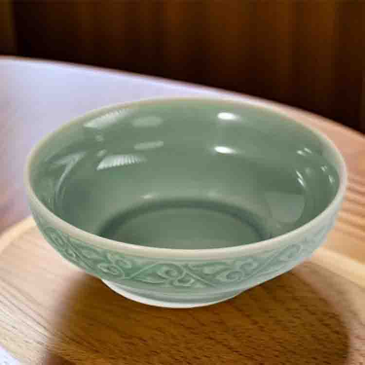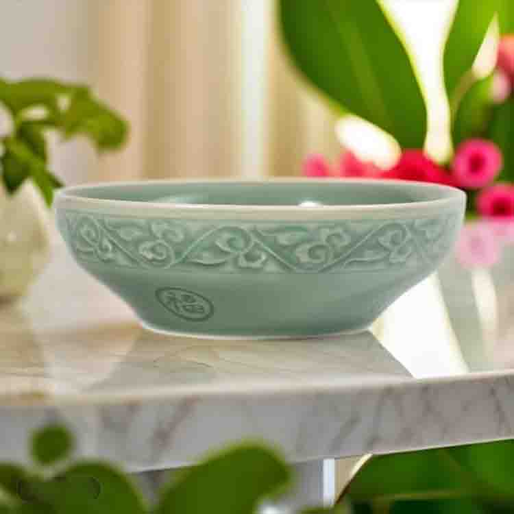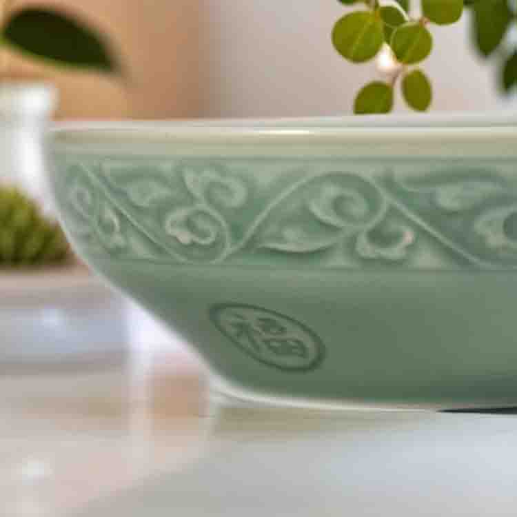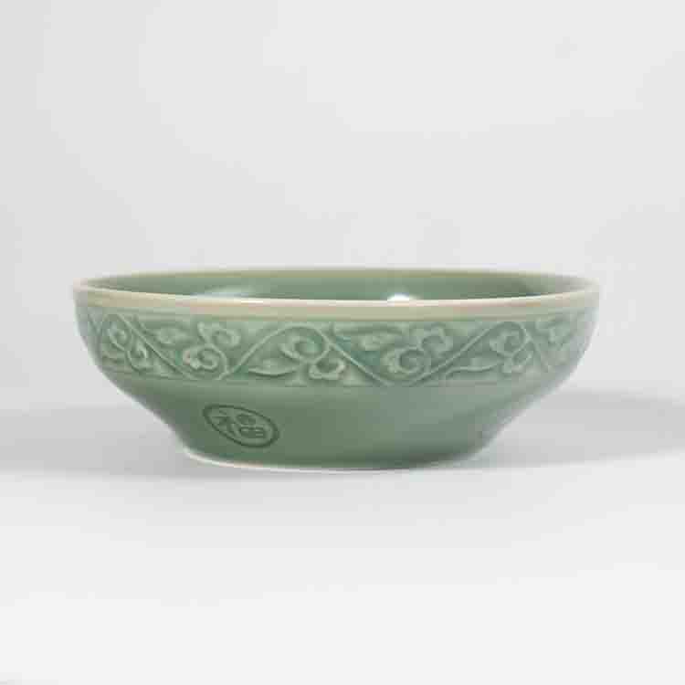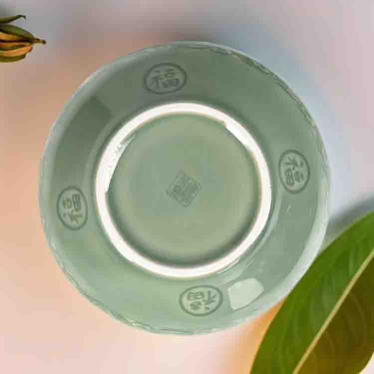 宋品天耀耀州窑5.5英寸福字碗高温青瓷碗餐具 *4个